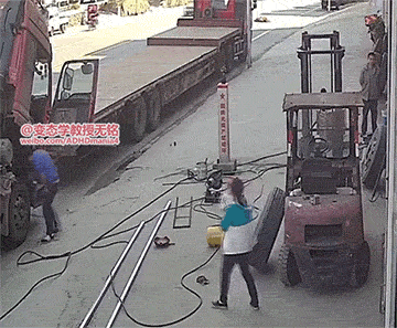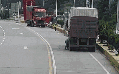 ▲司机去抠轮胎上嵌入的东西,结果当场炸晕了