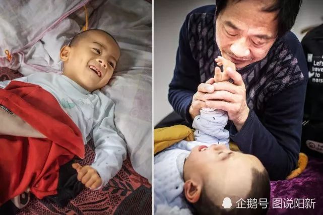 5岁,本该是活蹦乱跳,开心快乐的年纪,可5年来安安却一直是躺在病床上或搂在爷爷的怀里度过。安安被确诊重度发育迟滞别说走路跑跳,就连最基本的吃饭喝水对他来说都是奢望。每次给安安喂饭最少得一个小时,食物稍微大了就会被卡住,喂快了就会吐,老黄细心地喂两口馍就再喂一口水,然后还要把安安抱起来轻拍背部,一连串的动作熟练而温和。日复一日,年复一年,老黄不厌其烦,可有时精疲力尽自己身体不舒服时也免不了一把鼻涕一把泪。(可进入腾讯乐捐进行了解帮助:【悲苦祖孙的生死守望))