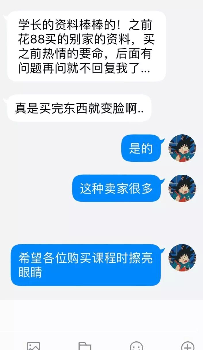课程骗子很多,售前特别热情,这几天有位20考研的小伙伴给我们发了这么一组截图。