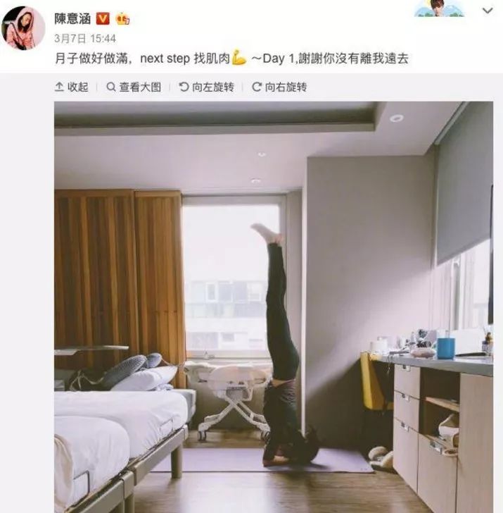 陈意涵是大家公认的元气少女,很喜欢运动,在怀孕期间她也没有懈怠,游泳、慢跑、瑜伽、健身一个没有落下,刚生完孩子就开始给大家表演倒立,整个人看上去极瘦。