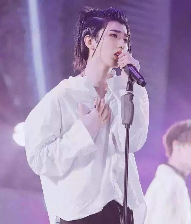 蔡徐坤穿着一件黑色的长裤,也是宽松设计,增添了几分慵懒的味道,和上衣的风格很搭,这次造型主打休闲风,一边唱歌,一边用右手按住胸口,很真诚!
