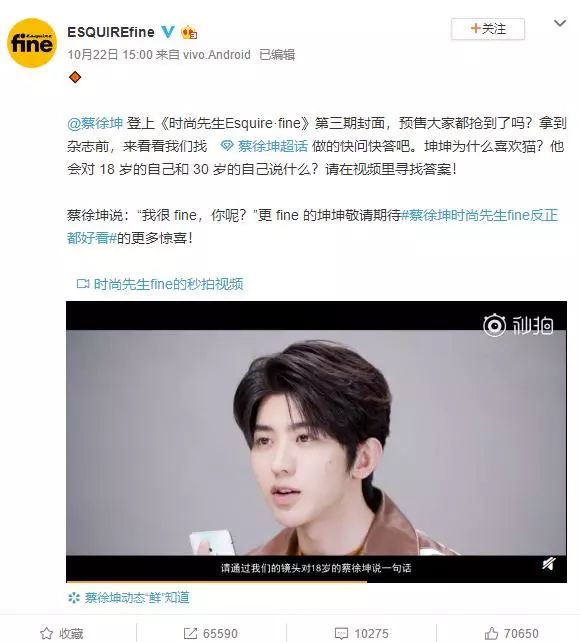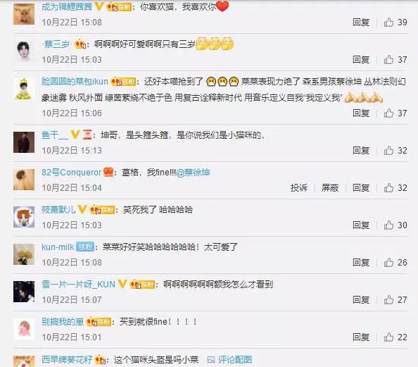 围观蔡徐坤采访视频微博评论 vivo新机和小猫咪头箍成亮点