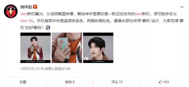 当然,这些也不完全纯属小编臆想。视频一经曝出,就有不少数码圈人士爆料称这款新手机就是vivo S5系列新机,而蔡徐坤携带未上市的新机出镜,也肯定是vivo S5系列代言人无疑。