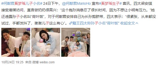 现在她和何猷君的孩子已经出生,取名为何广燊,赌王四太一家全体到场合照,因为是何鸿燊长孙并且也是何家第五代的首个男丁,地位不言而喻。其实在孩子一个多月的时候就有去各种验,四太也知道自己是男胎,所以为了家产才会勉为其难接受的。在孩子健康出世前奚梦瑶都是住酒店而不是住何家,不过不管怎么样,终究还是命好刚好遇到豪门扩招,肚子又争气。算算时间,她不久前才被求婚,四月份否认怀孕接着五月份求婚,现在十月份当妈,推算一下四月份的否认根本没有意义,已经满足三个月的硬性条件可以公布,现在翻出来看倒是有点打脸了。