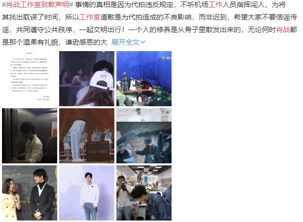 因为肖战在机场登机受阻导致航班延误引起其他乘客抱怨,工作室迅速发布声明致歉。原本肖战方应该是准时到达机场,却在登机前受个别人员影响登机受阻,导致航班延误。因为没有明说为什么受阻所以各种说法都有,而粉丝直接点名说是因为机场代拍造成的,航班时间是23:25,肖战已提前到达机场,因代拍强行进入才延误时间,肖战本人被连累无法及时登机,甚至工作人员也要为此承担后果。