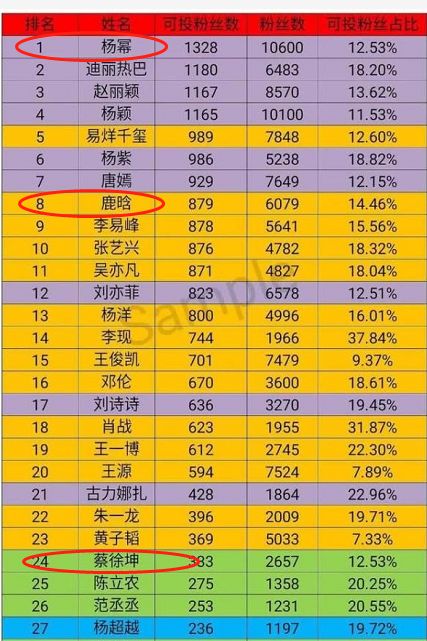 流量明星”真实粉丝排行:杨幂高居榜首,鹿晗仅排第八,蔡徐坤最令人惊讶!