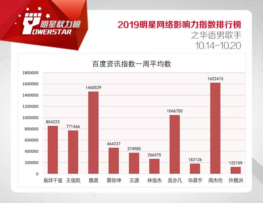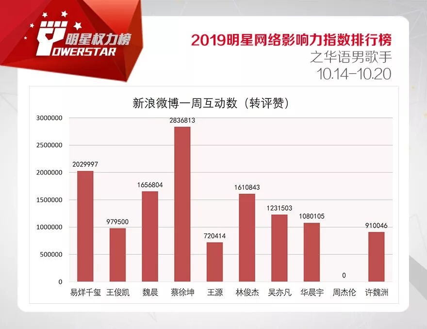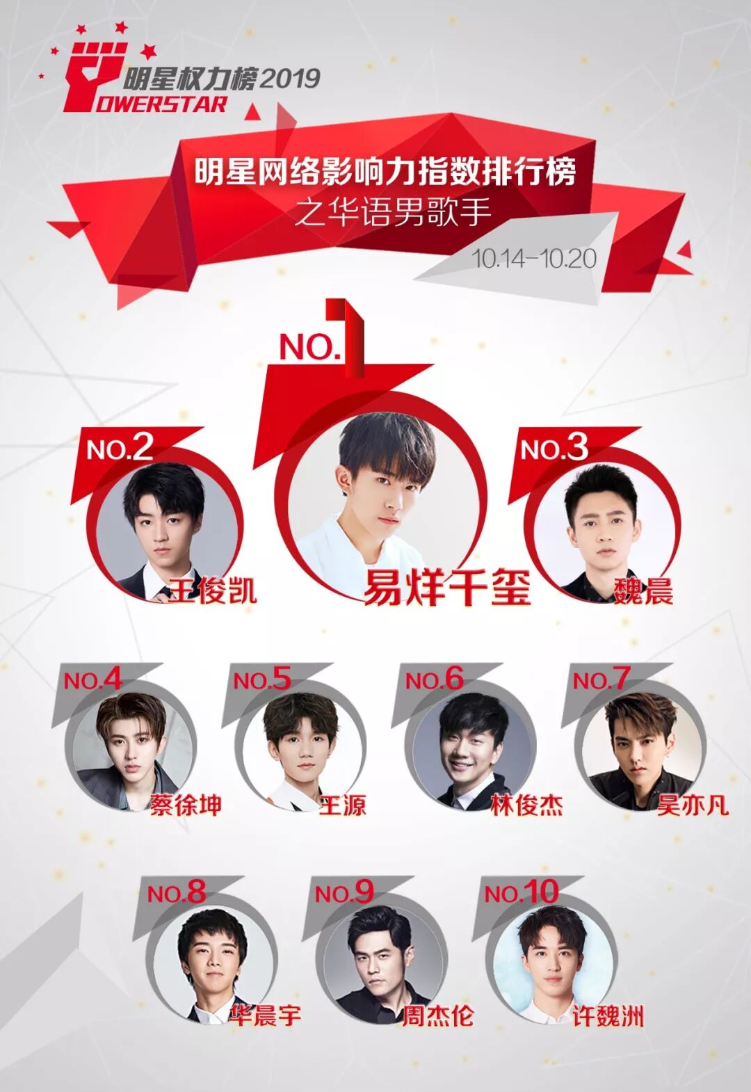 明星网络影响力指数排行榜第221期榜单之华语男歌手Top10