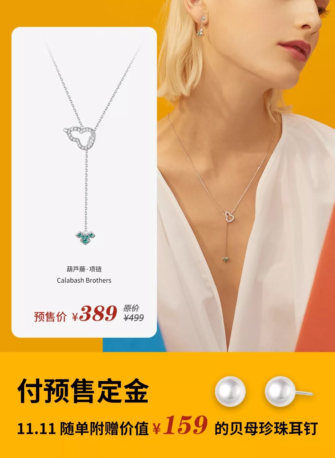 比如这款七彩的珐琅葫芦耳钉 + 项链就很俏皮,在鲜艳小葫芦外又镶上一整圈皓石,超级亮闪闪~