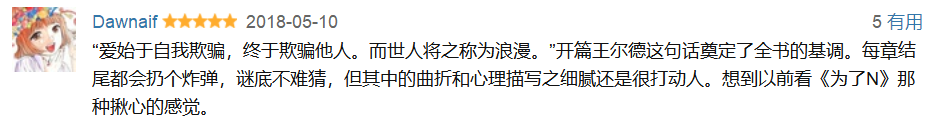 短短两句话就把女性作家的优势体现得淋漓尽致,细腻而又丰满,薇薇安想去相信丈夫,却又不知道该如何面对的心情跃然纸上。