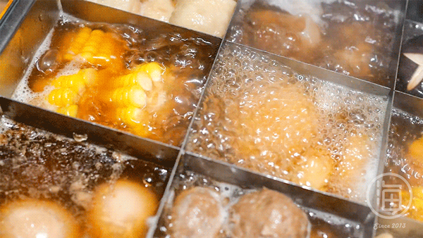 汤底是用木鱼花、海带熬出来的。卤蛋、玉米、排骨、猪脚等种食材,都藏在一格一格的高汤里。