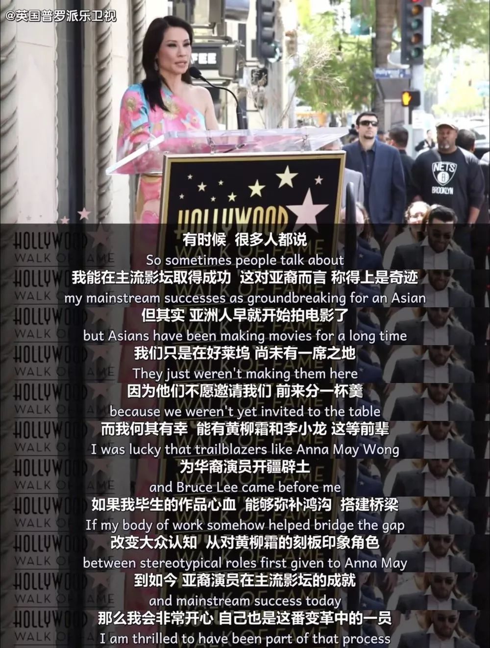 2019年,也就是今年,刘玉玲在好莱坞星光大道留名,成为史上在星光大道留名的第四位亚裔华人。她在授星仪式上说: