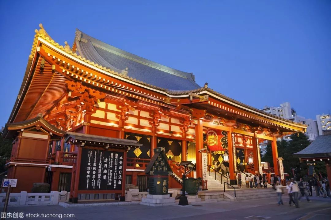 这里是日本观音寺总堂,相传在古天皇36年3月18日SUMIDA 川的三位渔民在出海捕鱼时,看到观音显现,于是那时的渔民回去将此事说出来以后,信观音的人日益增多,并建立浅草寺来供奉观音。