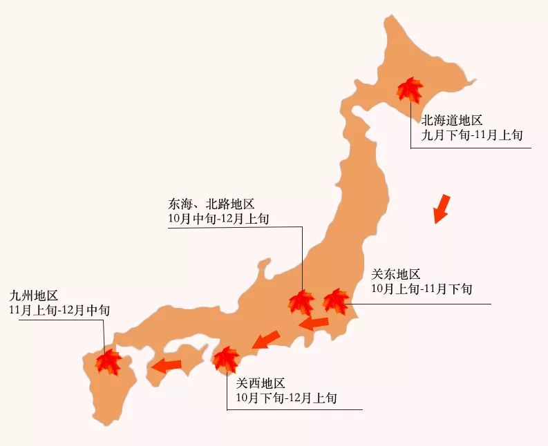 根据「红叶季」由北向南的枫叶转红路线