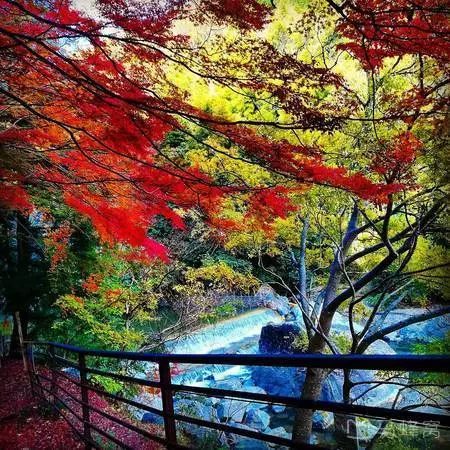 香岚溪是东海地区首屈一指的红叶名所,位于奥三河足助町的国家公园。到了11月,4000多棵枫树就像是打翻了颜料一样,一举染上红色。而且每当这时,当地都会举办长达一个月的“红叶祭”,组织太鼓演奏、茶会、祭典演奏等活动。边赏枫边观看演出,岂不乐哉!