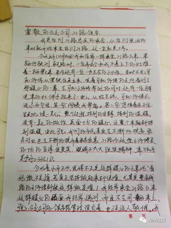 没想到,这位乘客后来还专门给车长写了一封感谢信。