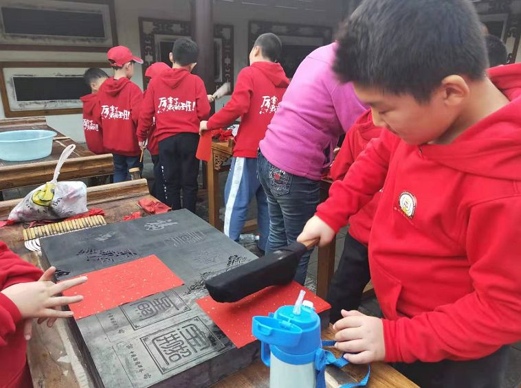 最后,在紧张有趣的拓片环节结束之后,孩子们恋恋不舍地上了车,告别了秀丽壮观的翰园。