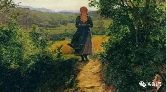 这幅画作是由一位奥地利画家完成的,而画中的内容则是一位走在乡村小道上的少女,而人们不难发现,这名少女正一边低头看着手中疑似智能手机一样的物品,一边走在路上,神情姿态像极了现代一边走路一边玩手机的人们。