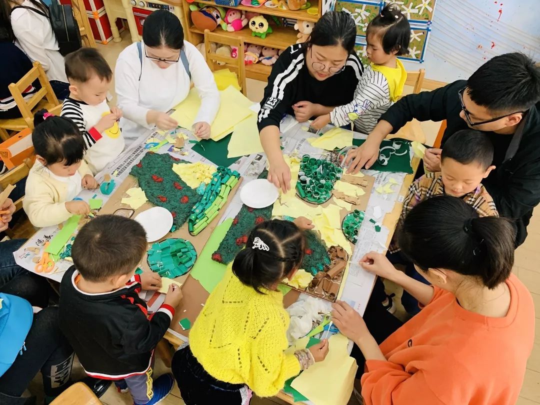点心环节结束后,各班开展了《穿越侏罗纪》主题亲子创意手工。本次活动中,小班年级组以恐龙为主题贯穿整个活动,每个班级提供各类废旧的操作材料、介绍有趣独特的操作方式,引导家长和孩子创作出富有表现力的作品。这一活动不仅能使孩子们懂得变废为宝、提高环保意识,更能让孩子和爸爸妈妈一起动手制作,让快乐的亲子时光成为孩子童年中一份美好的记忆。