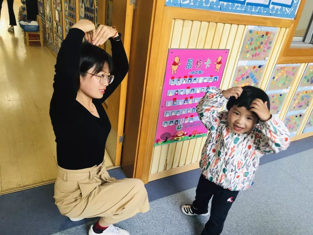 早操时间到了,小班的孩子们排着整齐的队伍走上圆圈,跟着老师一起向家长展示着动感活泼的韵律活动。