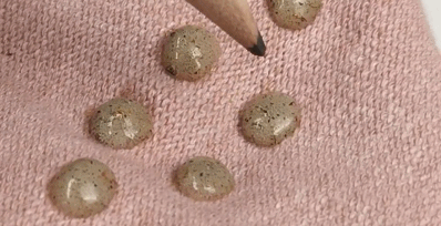而艾草精油颗粒经高科技纳米加工处理,浓缩于一个个纳米微胶囊中再附着到纱线上,等着在你穿着的时候破裂而出,释放出浓郁艾香的精华油~