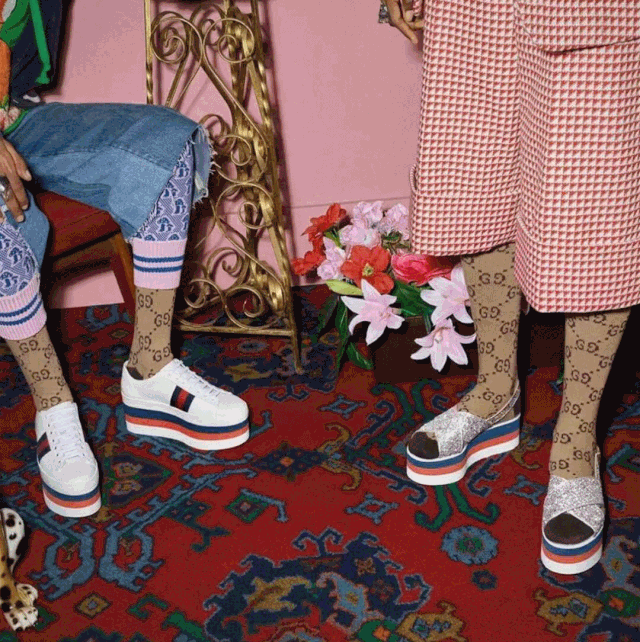 Gucci等大牌也推出了经典的老花系列,复古百搭又时尚,一双袜子就能解锁无数搭配。无论是搭高跟鞋、球鞋还是冬天的靴子都很出彩!