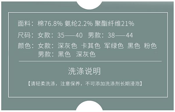 小编这次给大家带来的是男女两款中筒的艾草袜,5个颜色,粉色、军绿色、深卡其色、灰色、黑色,每一双都是独立包装。