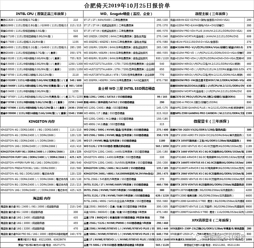 硬盘市场暂时波澜不惊,WD黑盘 NVME SSD全系列到货,250G、500G、1T都有现货供应。KINGSTON和WD主力型号120G和240G都受到货影响,价格稳定回调,但也只有5块钱左右的波动。KINGSTON M.2的120G、240G、480G以及支持NVME的A1000系列240G、480G也都开始正常备货销售了。INTEL SSD由于总代大幅调价影响,涨幅比较大;三星SSD也是供货不足,主力型号还是小幅上涨;支持NVME的970EVO PLUS也是全线到货,250G、500G、1T都有现货供应。