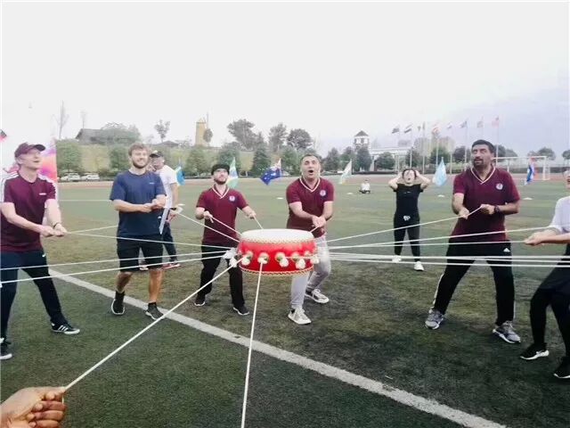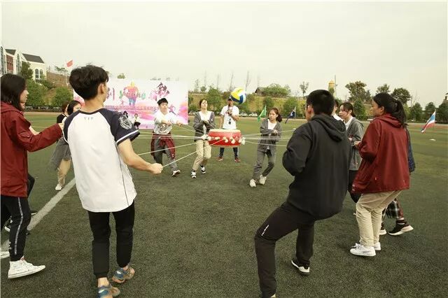 团体项目:拔河、30米迎面接力、跳长绳、鼓动人心、多人多足、旋风跑、踩石过河、铁人多项