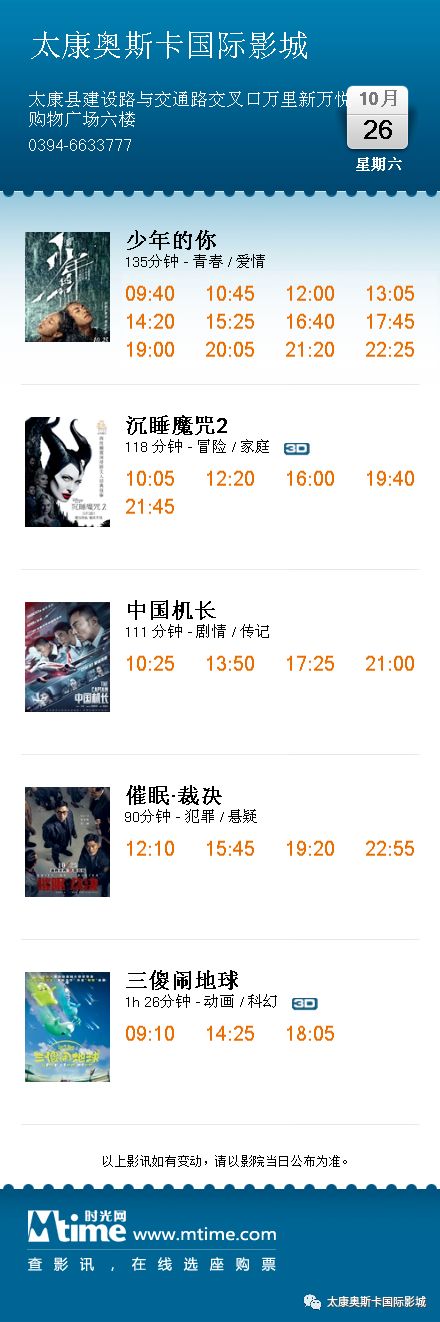 排期以影城前台显示为准,如有改动不另行通知。