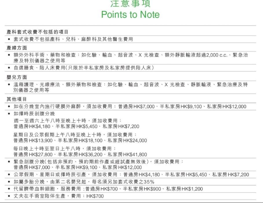 另外若选择住VIP房,医生连医疗器械的收费同样会升级至约$200,000,医生每晚巡房的费用约为$4,000。根据养和医院官方网页的收费表显示,如果孕妇希望在指定时间分娩,依日子与时间、房间级别的的不同,价钱亦会增加$4,180至$41,800不等。另外,如果丈夫选择在手术室陪伴生产,也需增收费用$700。