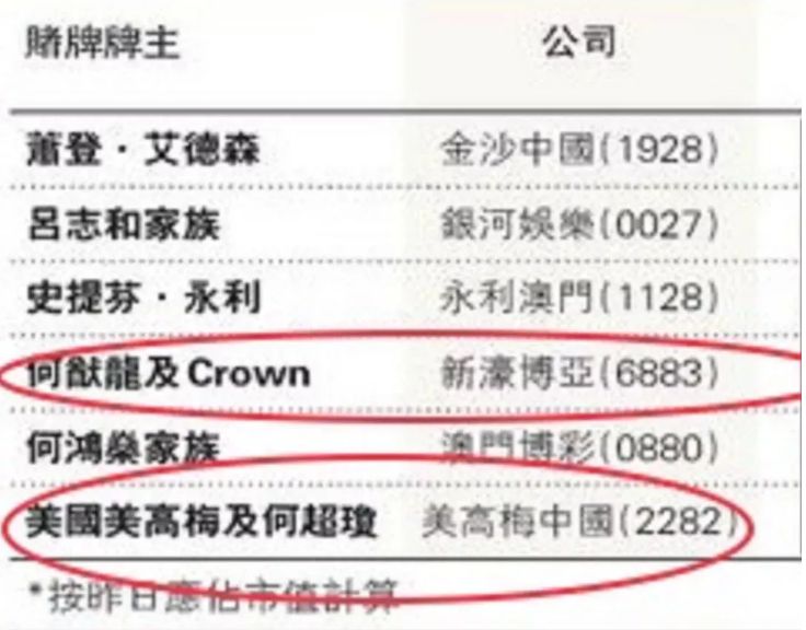 2011年有爆料称,何鸿燊的控制资产达5000亿港元,个人财富为700亿港元,在2011年福布斯香港40名富豪榜中,赌王以31亿美元,约合204亿元人民币的身家,排在第13位。