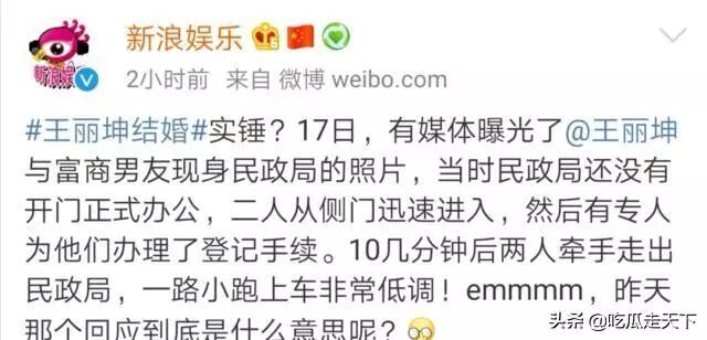 结果,王丽坤前一天刚刚否认结婚,第二天就被拍到与富豪男友在民政局门口领证。