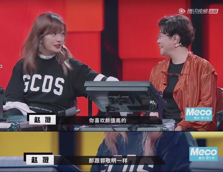 没想到赵薇接话可快了,还顺带cue一把郭敬明:你喜欢颜值高的啊,那跟郭敬明一样。