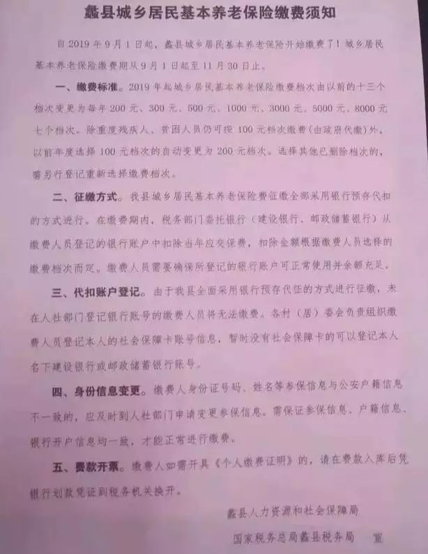 自2019年9月1日起,蠡县城乡居民基本养老保险缴费了!城乡居民基本养老保险缴费期从9月1日起至11月30日止。