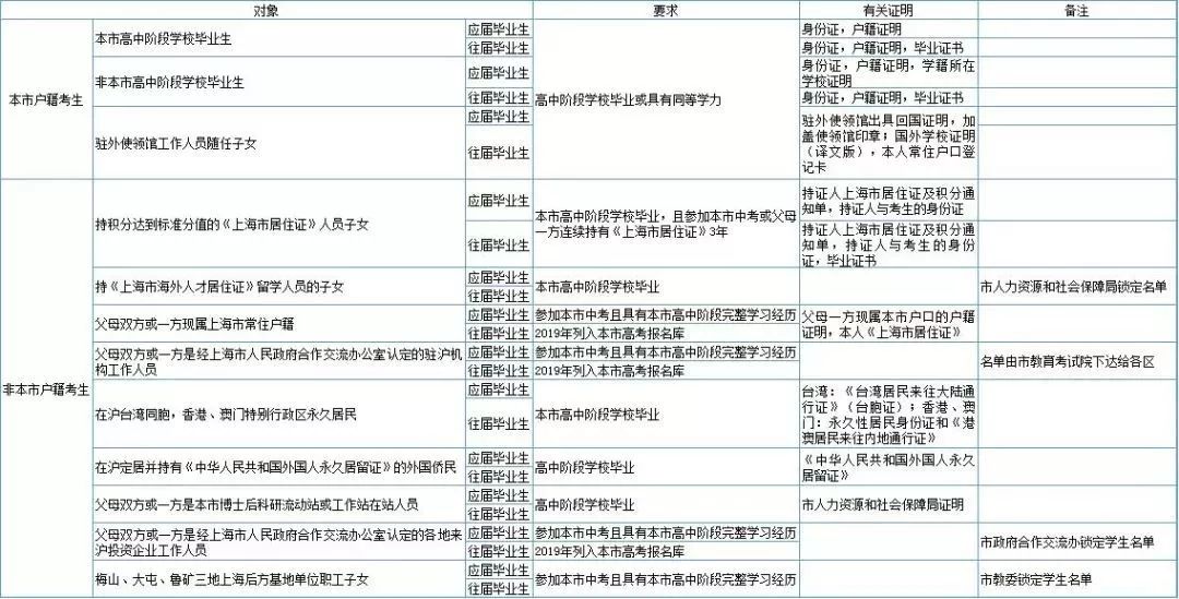 2020年在沪报考普通高校条件一览表