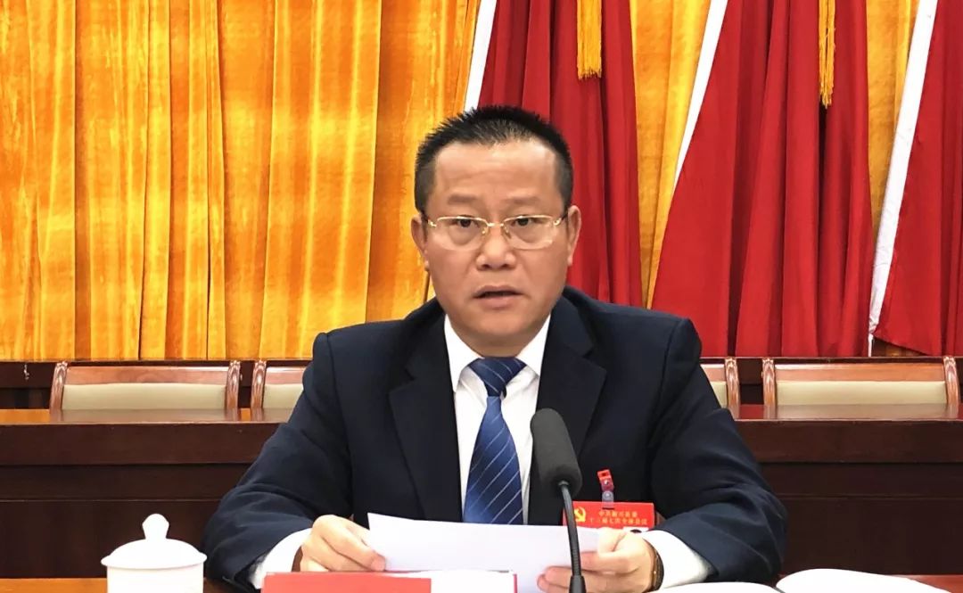 △新兴县委书记唐谊代表县委常委会作工作报告。