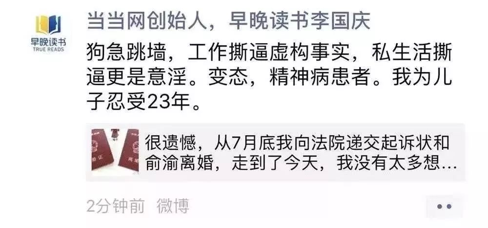 昨天俞渝在李国庆朋友圈评论的第一句话,就是: