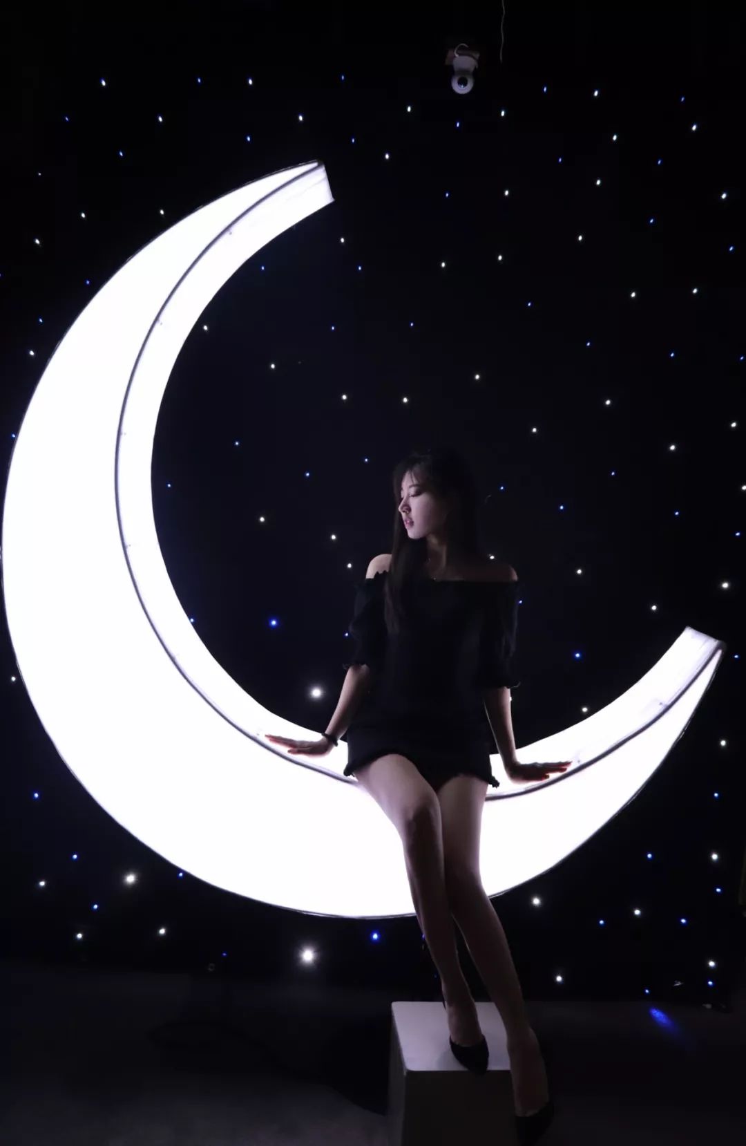 轻轻摇曳在月亮之上,摆拍出月光女神范儿