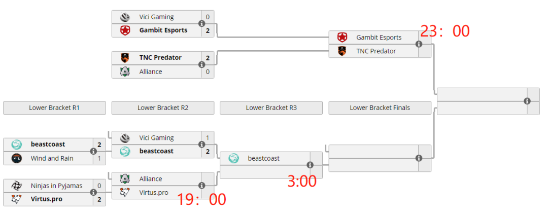 另一个小组头名TNC将在今晚迎战红星老师,VP在淘汰了NIP之后将对阵Alliance战队。