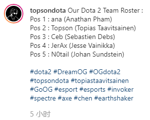 【3】Topson在Instagram上“官宣”OG新赛季阵容保持不变。
