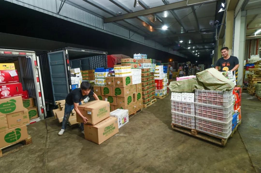 物流中心正在备货中,将新鲜果品配送全国门店