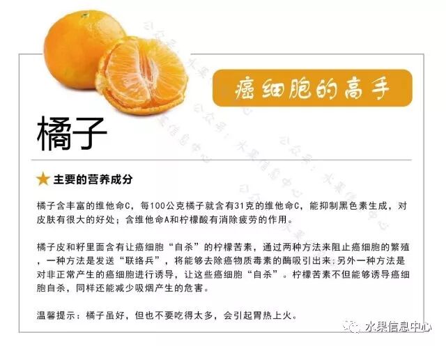 柑桔内含有多种营养成分,如葡萄糖、果糖、蔗糖、果酸、枸橼酸、维生素C、醇、柠檬醛、维生素B1、B2和钙、磷、铁等多种无机盐及其它营养物质。