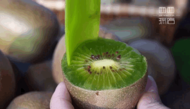挖着吃从中间切开,便露出色泽诱人的翠绿果肉