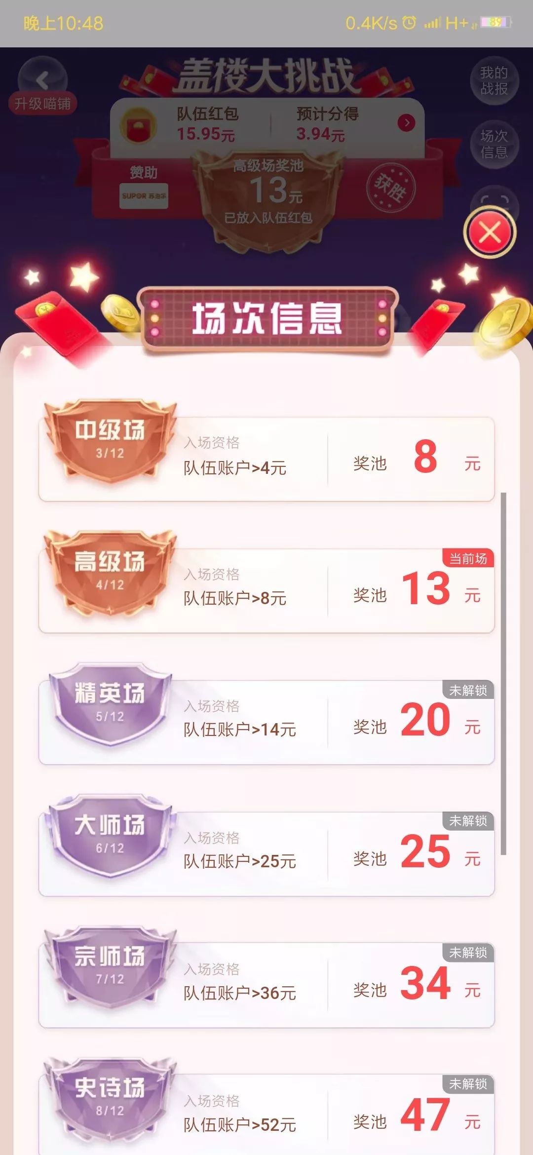 10月21日组队5个人可以得10元队伍红包,第二天5人上线可再得红包,另外升级喵铺也可以获得红包,10月25日开启盖楼挑战赛,到时候我们继续开启我爱网冲锋队伍!