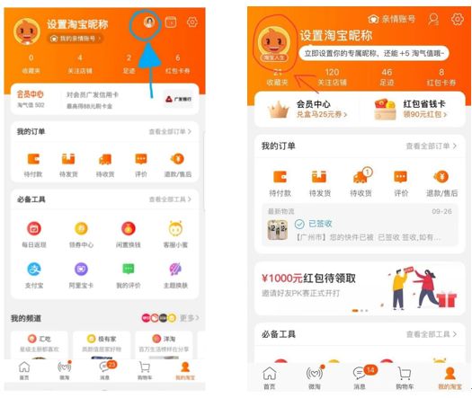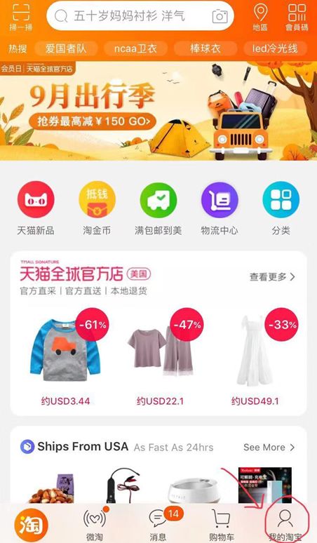First, I went to the home page and clicked on the bottom right hand icon labeled 我的淘宝 (My Taobao). (On a computer, the characters are at the top right hand side)