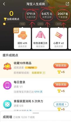 Next, you’re brought to a page with what I guess is your Taobao avatar. If it’s the first time you’re doing this, it may have pop-ups asking if you’re male or female and trying to get other info. I just skipped all of those steps. Click on the 成就 (Achievement) icon.