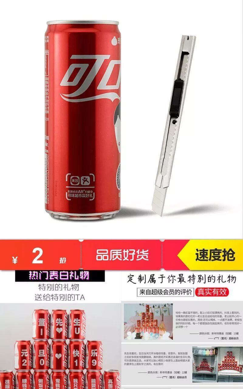 摩登罐可口可乐天猫超市3元一罐,线下超市3.5元一罐,还有赠品一把美工刀