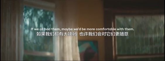 月经本应该是如吃饭、喝水一样自然又正常的事,满怀羞耻感,无形中未必不是女性的一个枷锁。感谢这支广告,打破这道枷锁。