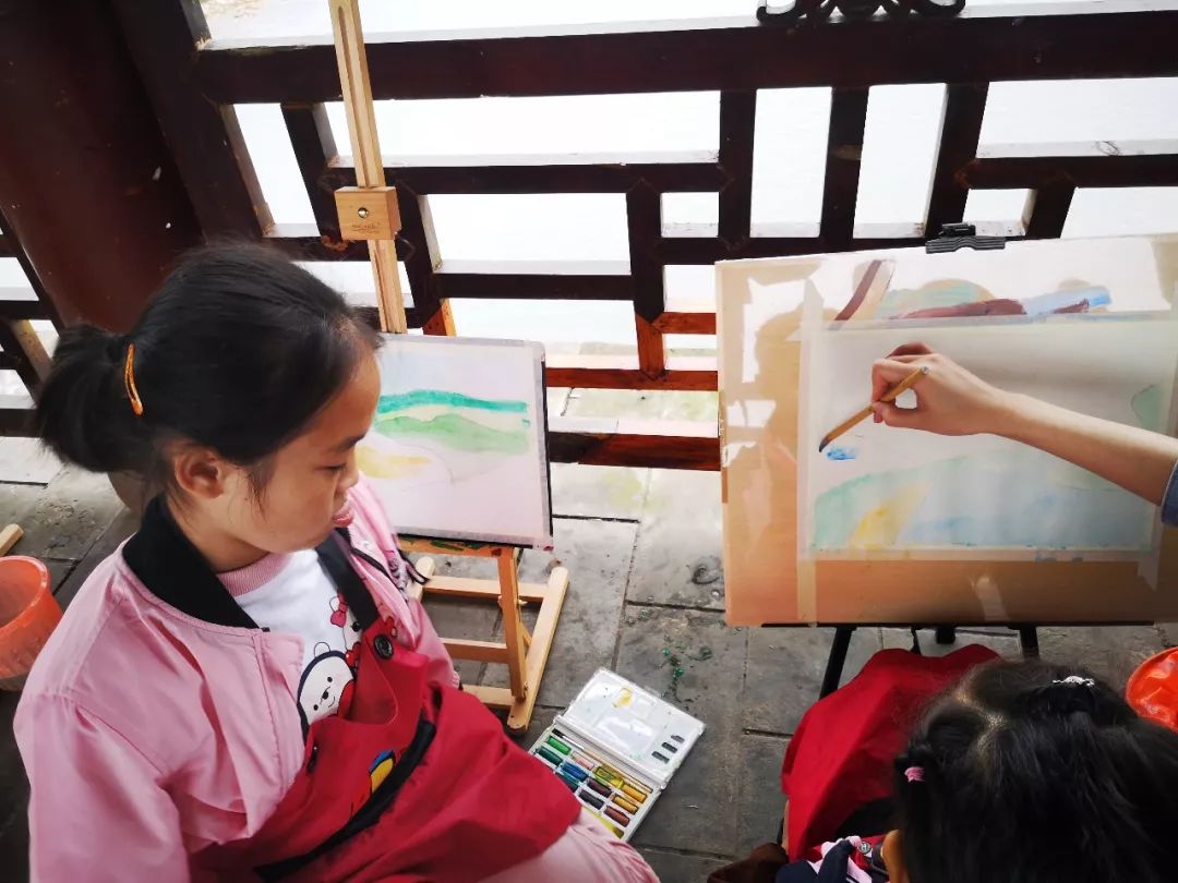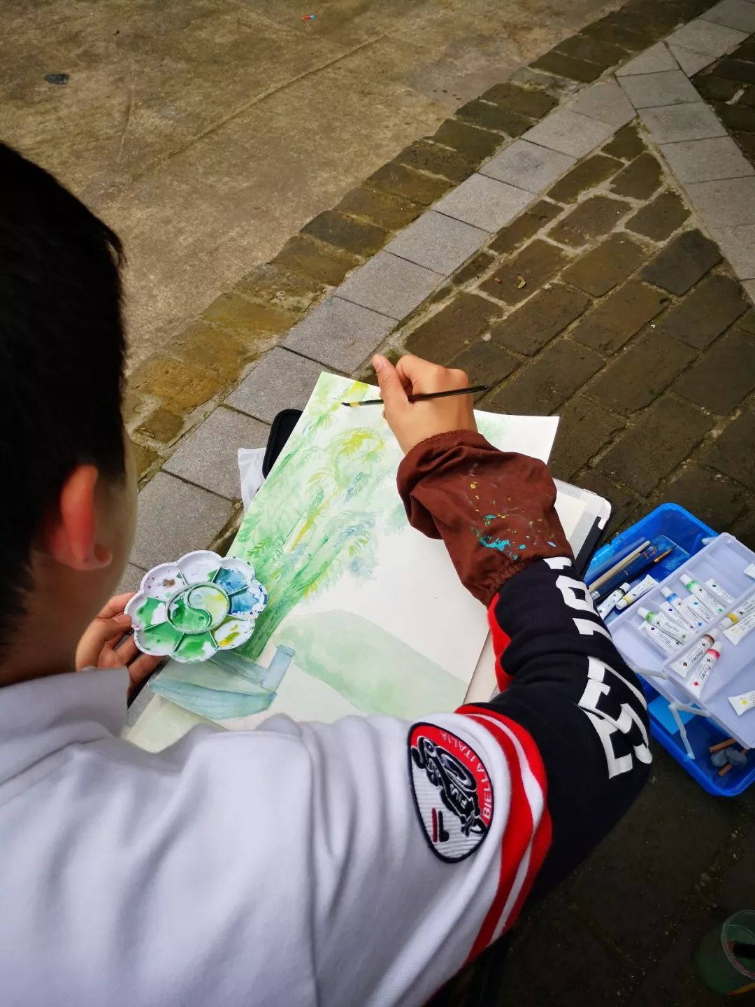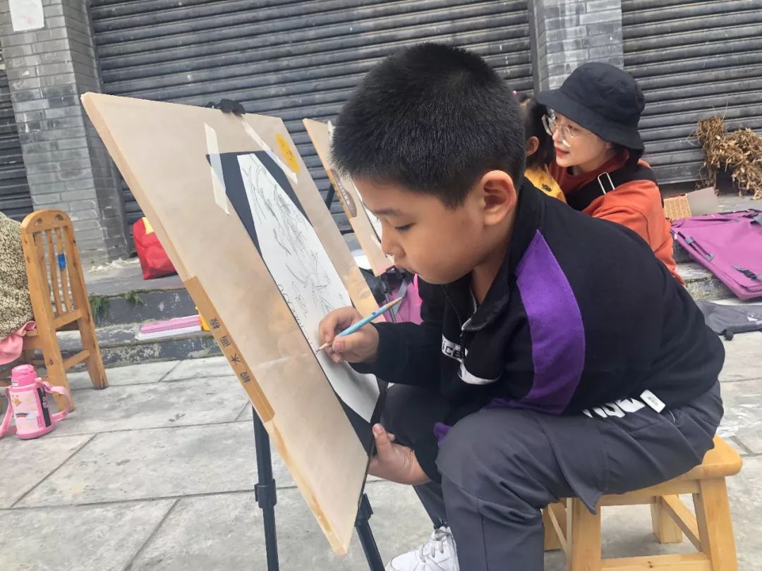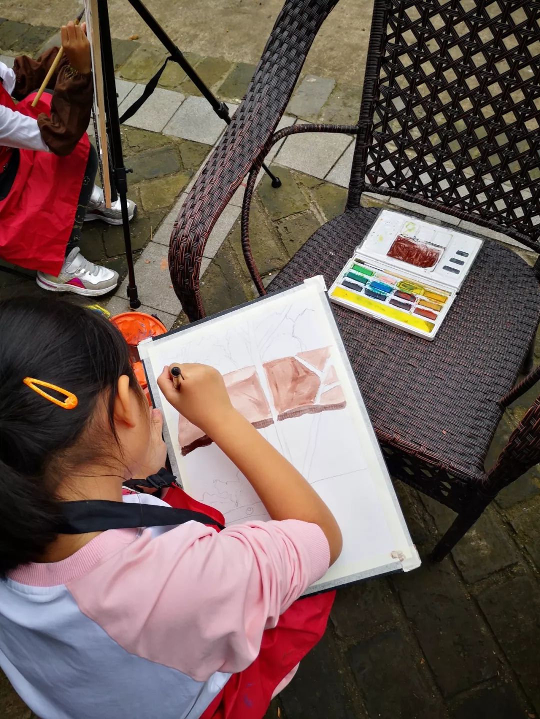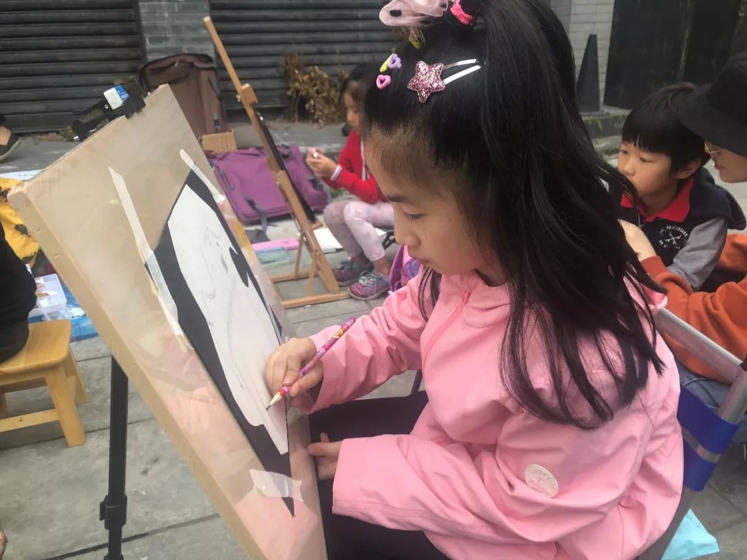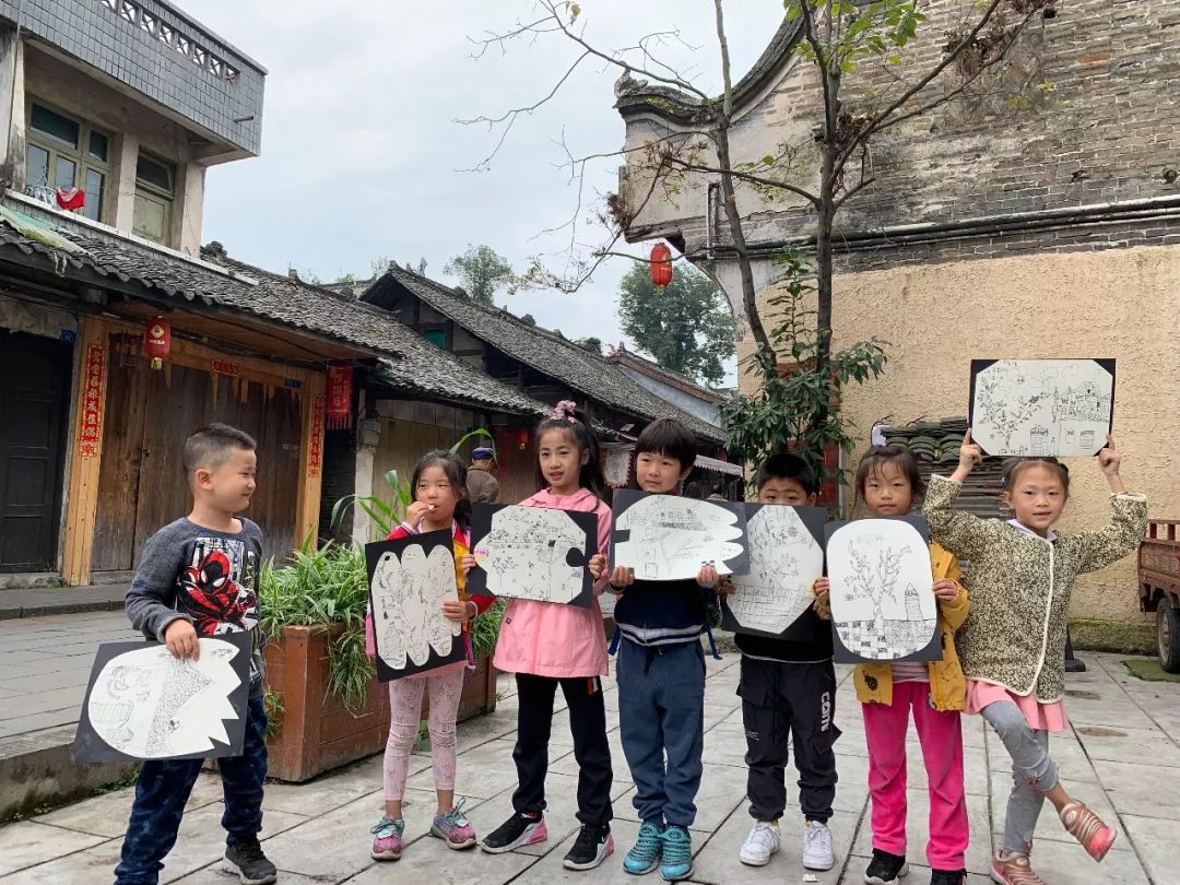 有一群吵吵闹闹又纯真可爱的小天使,跟随着金秋的风,洋溢着太阳般的笑,来到了这里,用手中的画笔,赋予了新场古镇别样的斑斓色彩。