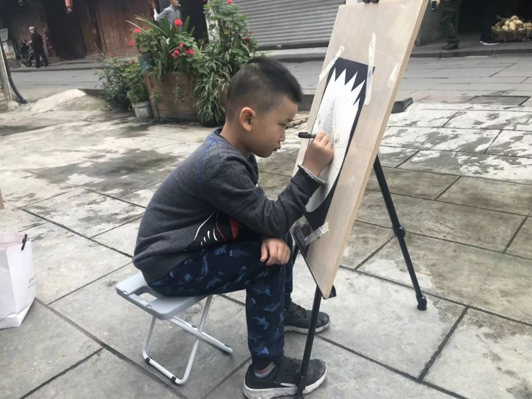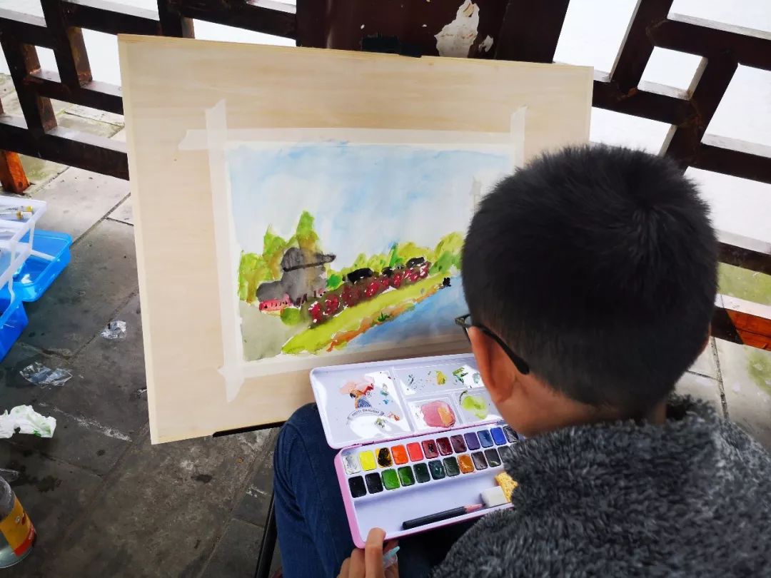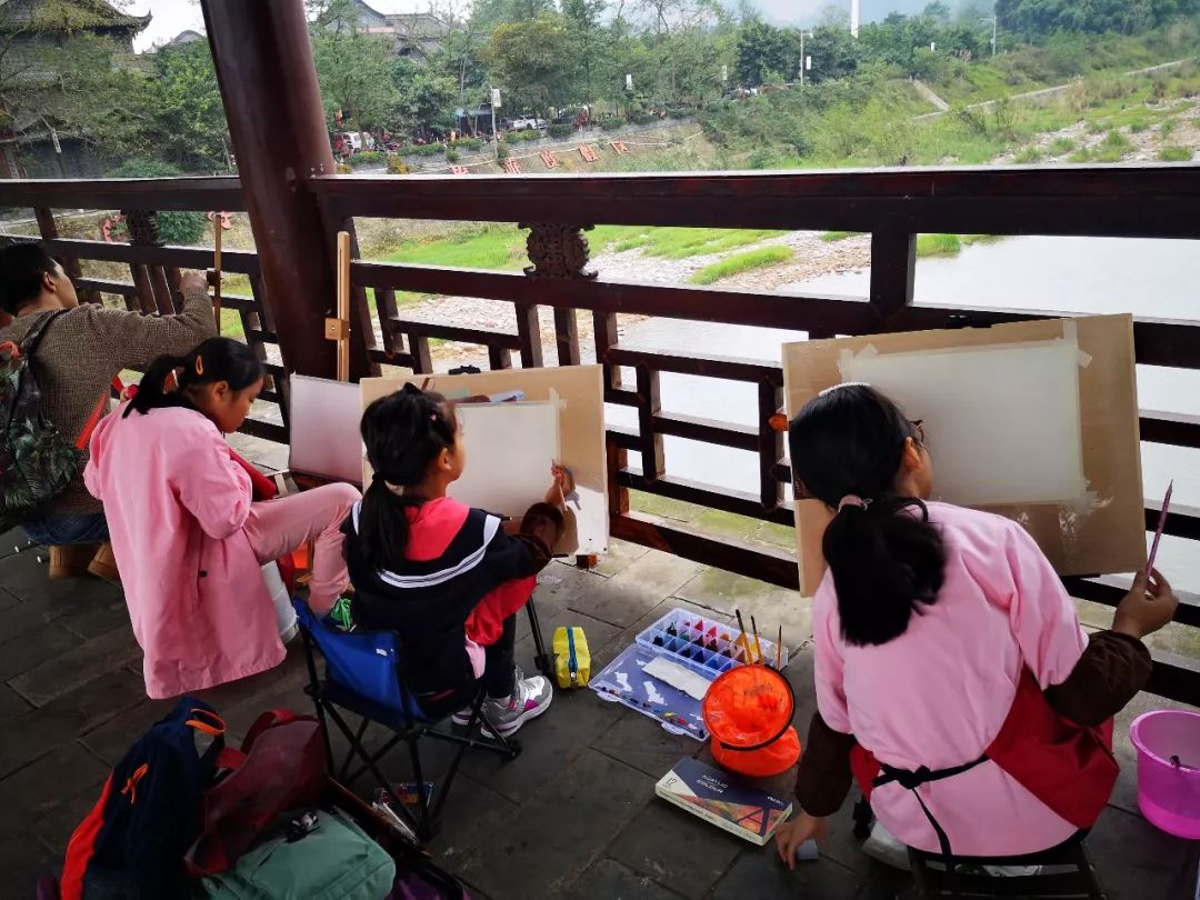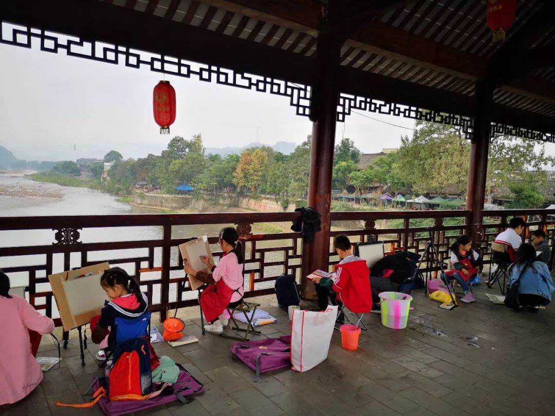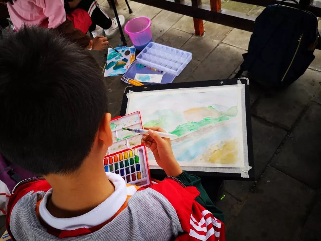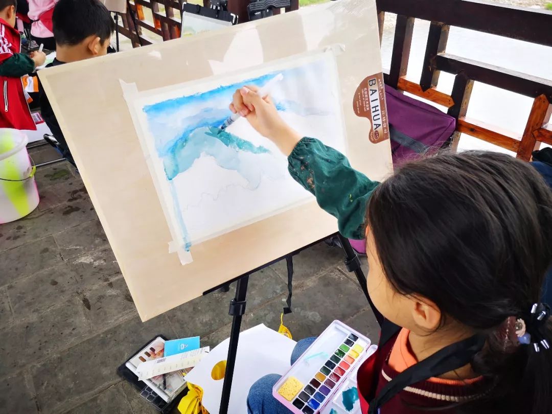 有一群吵吵闹闹又纯真可爱的小天使,跟随着金秋的风,洋溢着太阳般的笑,来到了这里,用手中的画笔,赋予了新场古镇别样的斑斓色彩。